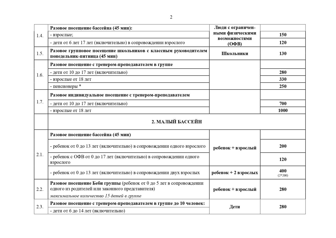 Прейскурант цен на услуги, предоставляемые муниципальным автономным учреждением физкультурно-оздоровительным комплексом "Олимп" Утвержден приказом и.о. директора МАУ ФОК "Олимп" от 31.03.2025 № 14-ос