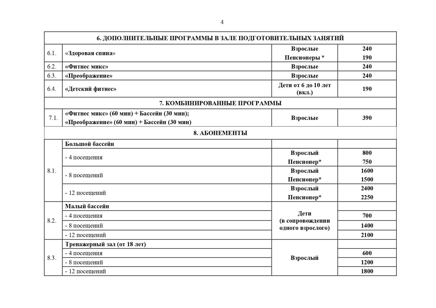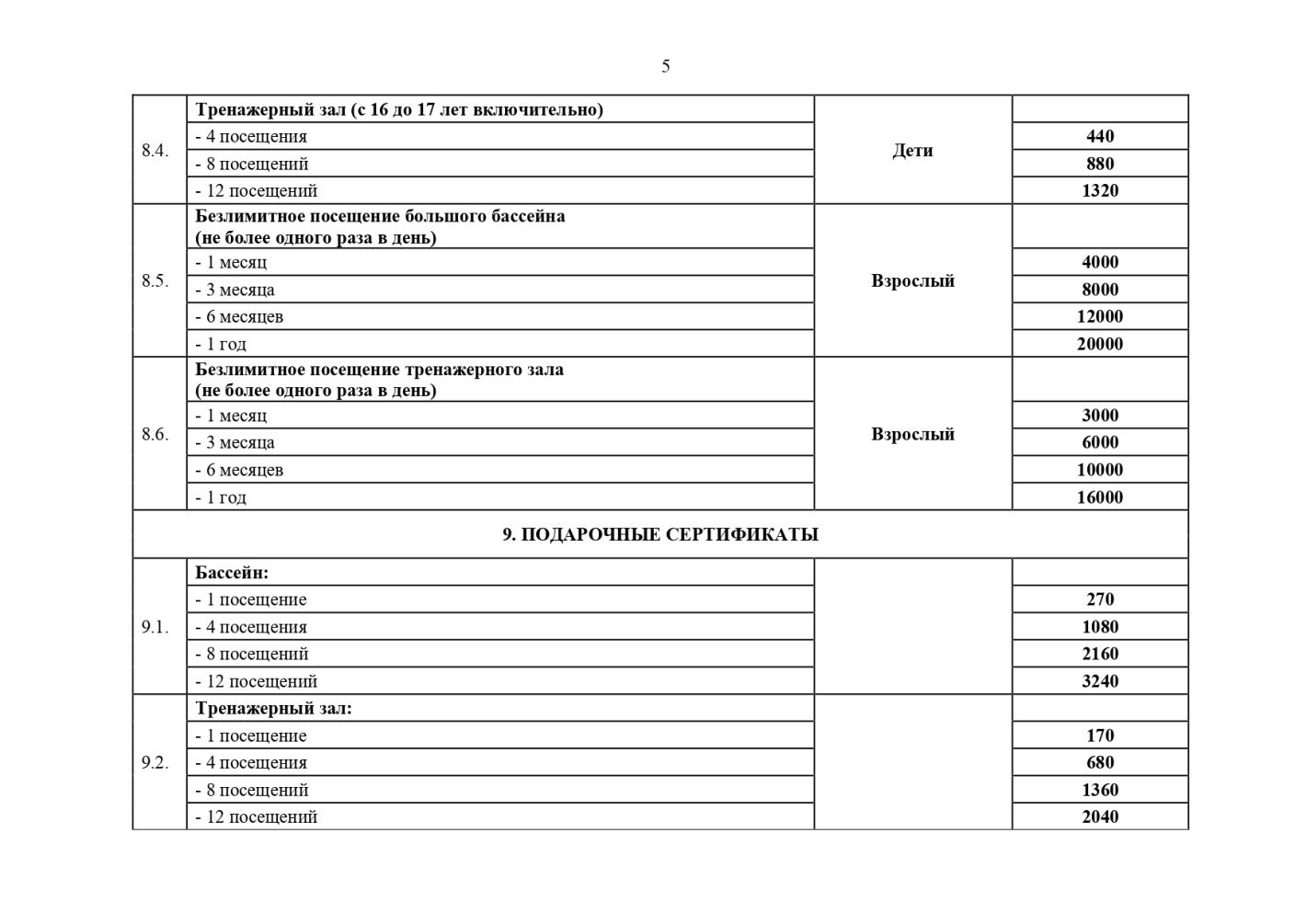 Прейскурант цен на услуги, предоставляемые муниципальным автономным учреждением физкультурно-оздоровительным комплексом "Олимп" Утвержден приказом директора МАУ ФОК "Олимп" от 12.08.2025 № 30-ос